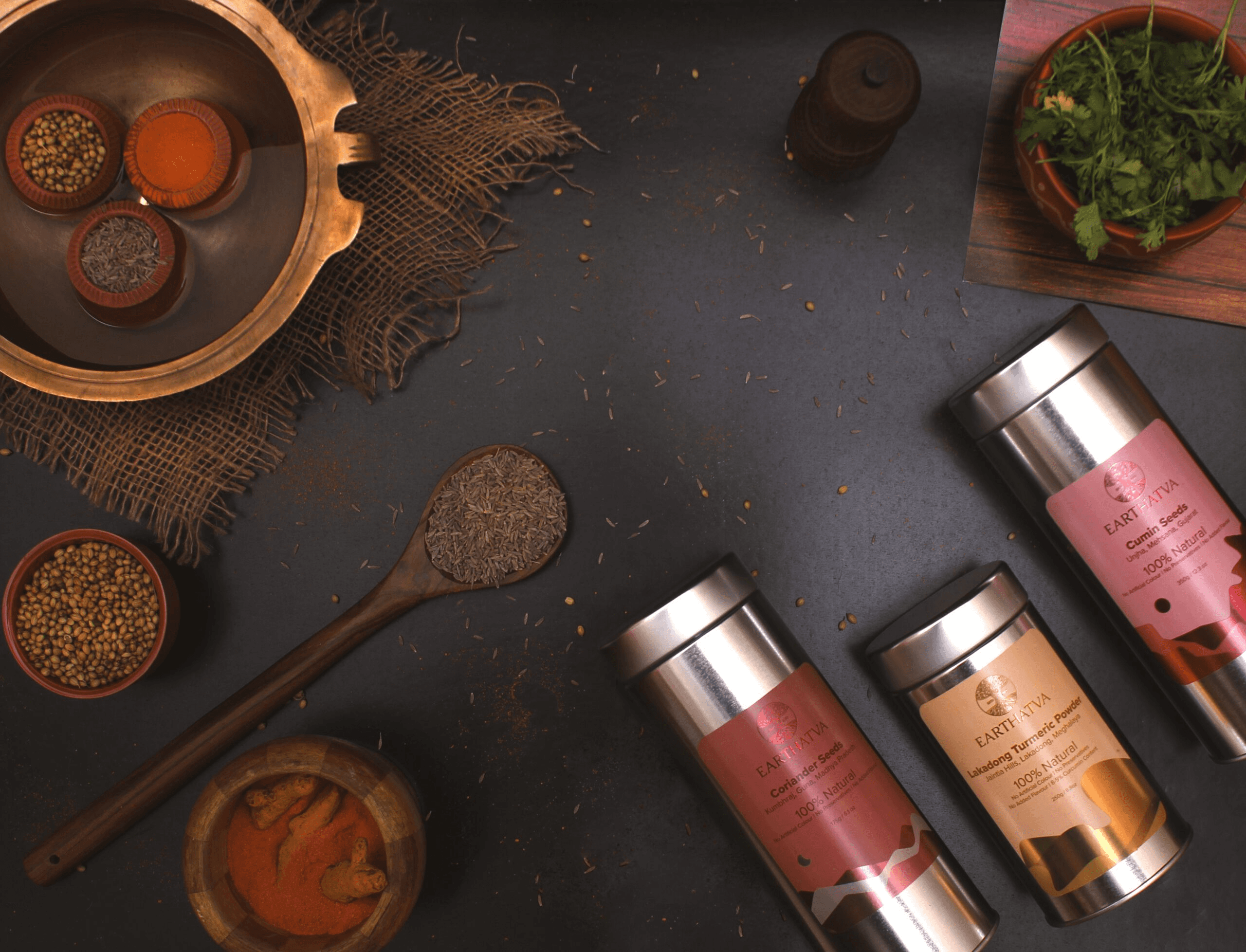 A tin of Earthatva spices does not look like a spice packet. It looks like something worth gifting. That is exactly the positioning the brand was built for.